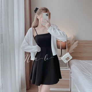 [Shop bigsize nữ 50kg-90kg] Set áo peplum đan dây + chân váy chữ A đi tiệc