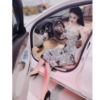 Váy đầm nữ body hai dây họa tiết chữ (có mút) HT56