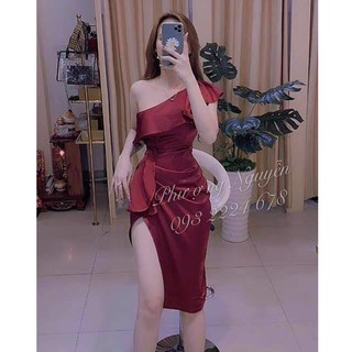 Váy đầm nữ body lệch vai xẻ tà (có mút) chất umi co dãn thoải mái khi mặc