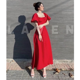 Váy đầm nữ màu đỏ dáng xòe tay bồng dự tiệc cực sang chảnh