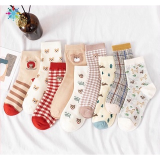 Vớ cotton cổ vừa thoáng khí thấm hút mồ hôi in họa tiết gấu nhỏ dễ thương cho nữ sinh YKT