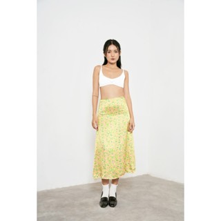 DOTTIE - Chân váy midi lụa in hoa nữ vàng S0122