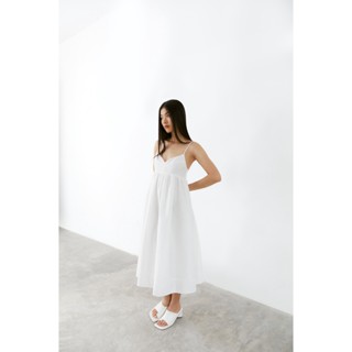 DOTTIE - Đầm midi vải organza nữ trắng D0395