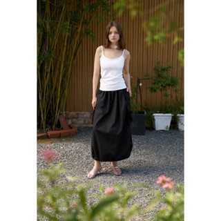 DOTTIE - Chân váy midi xếp phồng - Đen - S0174