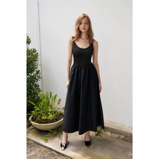 DOTTIE - Đầm dài sát nách phối vải - Đen - D0507