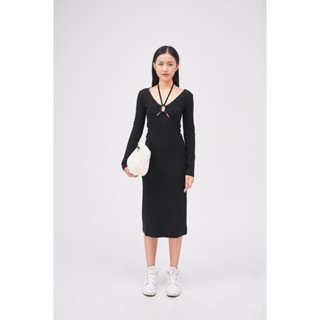 DOTTIE - Đầm thun dài cut- out nữ đen D0333
