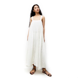 DOTTIE - Đầm dài hai dây vải đục lỗ nữ trắng D0334