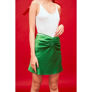 DOTTIE - Chân váy mini vải rũ bóng nữ xanh lá S0092