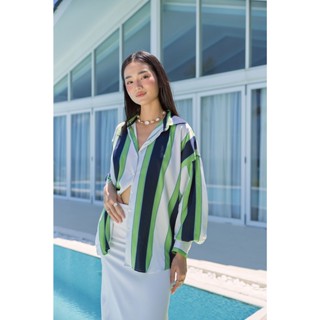 DOTTIE - Áo sơmi satin kẻ sọc - Xanh lá - T0716