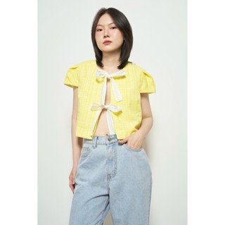 DOTTIE - Áo kiểu vải tweed phối nơ - Vàng - T0691