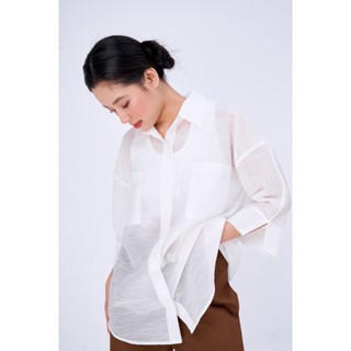 DOTTIE - Áo sơmi vải organza tay ngắn nữ - Trắng - T0448