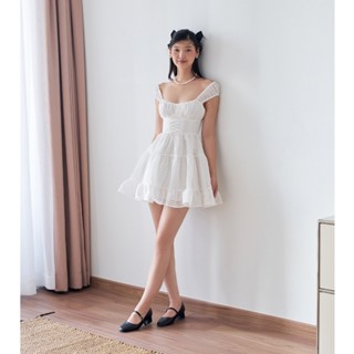 DOTTIE - Đầm ngắn nhún ngực phối bèo - Trắng - D0481
