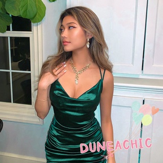 DUNEA Đầm Cổ Chữ V Hở Lưng Xếp Ly Quyến Rũ Thời Trang Cho Nữ