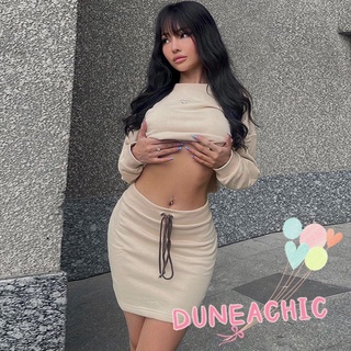 DUNEA Set Áo Thun Tay Dài Dệt Kim Phối Chân Váy Xẻ Tà Thời Trang Trẻ Trung Cho Nữ