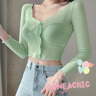 DUNEA Áo Croptop Tay Dài Thiết Kế Cổ Chữ V Quyến Rũ