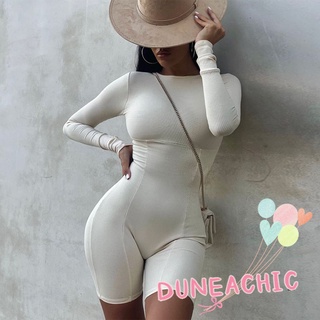 Áo liền quần DUNEA dệt kim tay dài màu trơn thiết kế đơn giản cho nữ