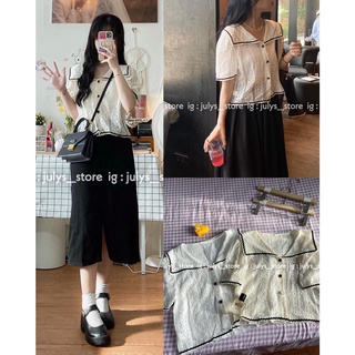 Áo ren cổ bẻ viền đen (ảnh thật kèm video)