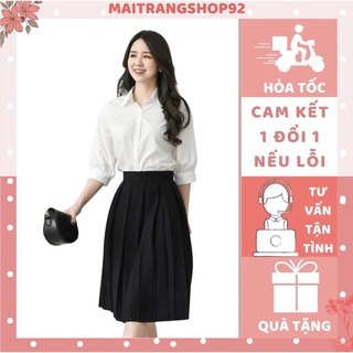 Chân váy công sở dài chữ A lưng cao, chân váy dài qua gối dập ly dáng xoè màu đen đẹp - (CV03)