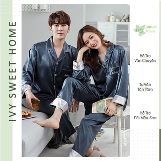 Đồ Ngủ Lụa Dài Tay Satin Cao Cấp Đồ Đôi Mặc Nhà Nam Nữ IVY635