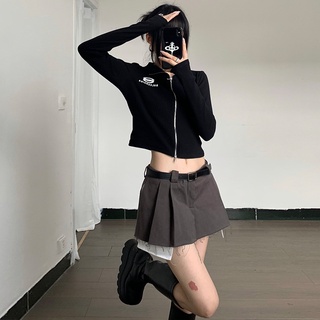 Áo thun tay dài phối khoá kéo thiết kế quyến rũ