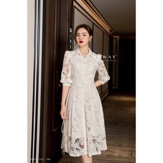 Đầm Ren Nữ Tay Ngắn MY WAY Dáng Xòe Công Sở Cổ Sơ Mi Cao Cấp 9MD0248 HT1