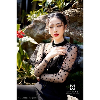 Áo Sơ Mi Nhung Nữ MY WAY Tay Bồng Phối Voan Chấm Bi Sang Trọng 9MA0712