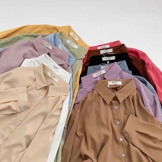 Áo sơ mi tay dài form rộng màu trơn phong cách Hàn Quốc thanh lịch trẻ trung cho nữ