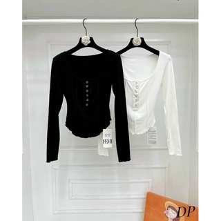 Áo thun tăm mở cúc vạt bầu dài tay sexy
