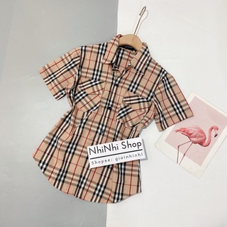 XẢ HÀNG Áo sơ mi kẻ BBR 2 túi form vừa, Áo kiểu sơ mi kẻ ngắn tay cổ bẻ SM2072 - NhiNhiShop