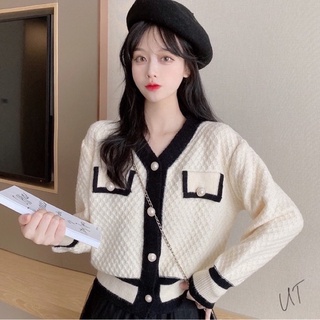 Áo khoác len cadigan viền đính nắp túi dáng ngắn AK1847 - NhiNhi Shop