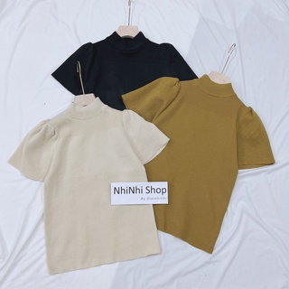 Áo len ngắn tay cổ tròn tay bồng, Áo len cổ cao cộc tay co giãn AL5129 - NhiNhiShop