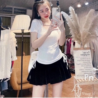 Áo kiểu cổ vuông rút dây 2 bên, Áo thun dáng ôm ngắn tay co giãn AS5520 - NhiNhi Shop