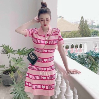 Váy len polo ngắn chữ MM form ôm body đẹp, Đầm kiểu in chữ dáng ôm VL9802 - NhiNhi Shop