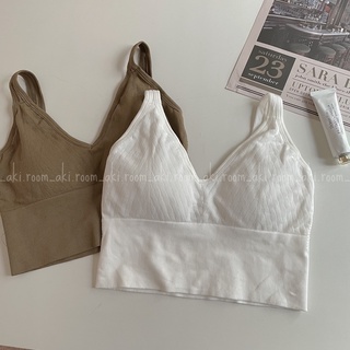 Áo bra thun tăm mềm co giãn cổ V có mút lót ngực