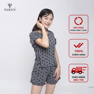 Bộ đồ hè nữ Narsis M0007 màu ghi chấm bi đen