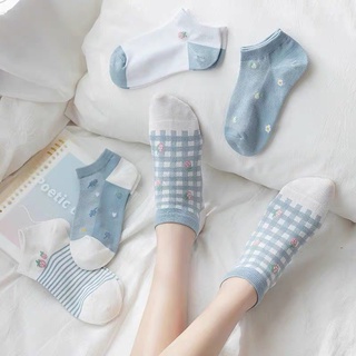 Tất , vớ cổ ngắn cotton hoa tiết dâu tây xanh dễ thương