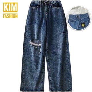 Quần jean suông bigsize 58-85kg,quần ống rộng lưng cạp cao phong cách ulzzang unisex hàn quốc