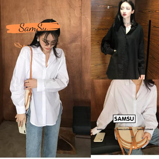 Áo SƠ MI TAY DÀI nữ màu trắng đen form rộng chất vải mềm mịn SAMSU