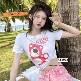 Áo Croptop Nữ Tay Ngắn Cổ Tròn In Hình Gấu Lotso Chất Vải Mềm Mịn Mát Mặc Đi Học Đi Chơi SAMSU