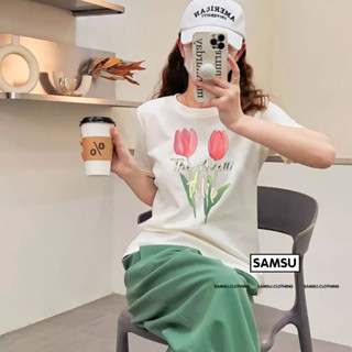 Áo baby tee nữ in hình hoa tulip form fit ôm body chất vải dày dặn co dãn tốt samsu.clothing_saigon