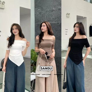Áo thun trễ vai vạt nhọn chất thun gân dày dặn phong cách Hàn Quốc mặc đi học đi chơi đều được Samsu.clothing_saigon