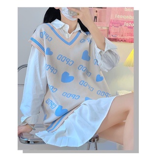 Áo gile chui đầu dệt kim không tay dáng rộng cổ chữ V khâu hình kim cương dễ thương mới cho học sinh