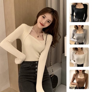 Áo Sweater Dệt Kim Cổ Chữ U Dáng Ôm Giả Hai Lớp Thời Trang Năm