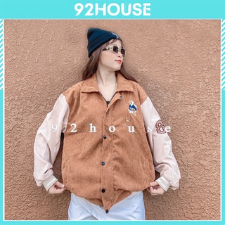 Áo khoác bomber unisex thêu gấu teddy / Áo khoác nam nữ nhung tăm thêu gấu bóng chày cá tính