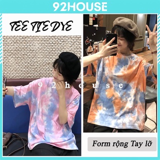 Áo thun tay lỡ unisex loang màu xanh cam hồng freesize form rộng tay lỡ