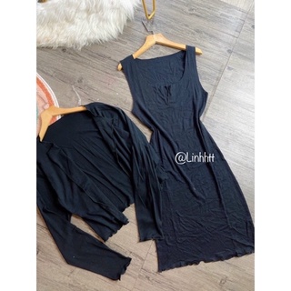 ❣️HÌNH THẬT ❣️ Set đầm body kèm khoác thun len Linh Htt