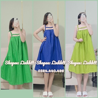 Đầm bông hai dây phối cúc dáng dài đầm maxi bông kèm mút sẵn Linh htt