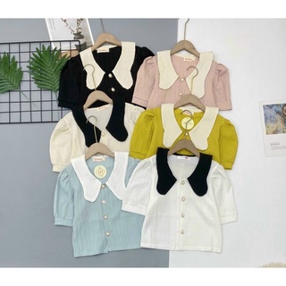 Áo Sơ Mi Cộc Tay Nữ cổ viền tay bồng m007r