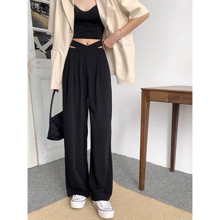 Quần ống rộng cạp cao đan chéo tuyết mưa 2 màu đen trắng siêu hack háng