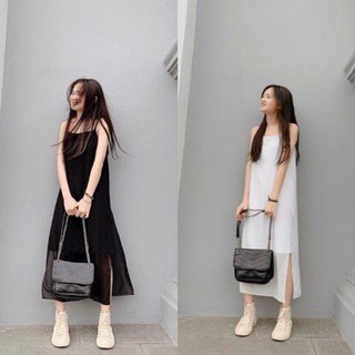 Váy 2 dây dáng dài xẻ chất voan có lót, đầm hai dây trơn tiểu thư bánh bèo nữ tính 2 màu đen trắng